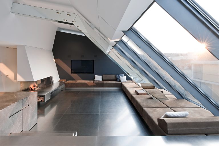 The SPIN® Plan stainless steel floor picks up the lighting mood and transfers it into the interior. At the same time, the stainless steel flooring’s restraint connects other materials in the interior and creates a balance in the room. The non-directional plan cut on the stainless steel makes the Hoba Steel flooring even more functional and pleasant.
